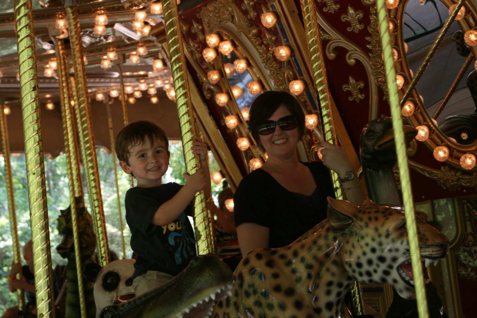 After coming back in the zoo, it was time for the carousel. I love a good merry-go-round and this one was sweet. All the animals in the zoo were there for Taft to pick from and we had to ride three times.